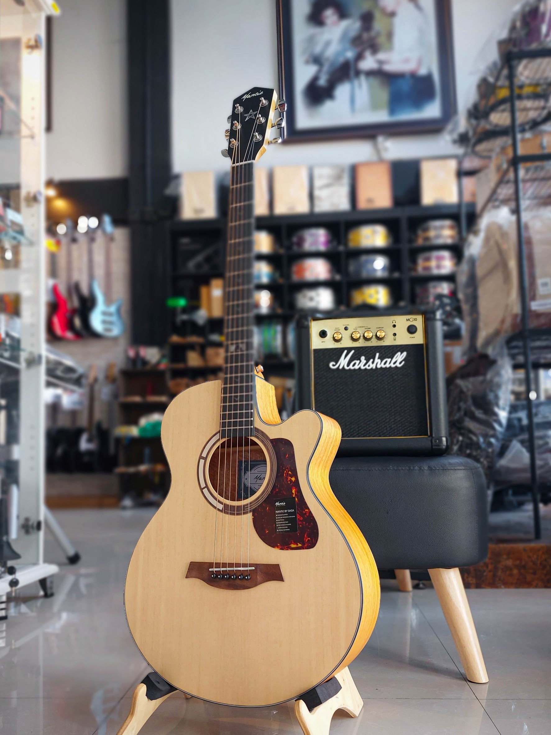 ✅ กีต้าร์โปร่งราคาเบาๆเหมาะกับผู้เริ่มต้น สำหรับรุ่นนี้จะมีขนาดเล็กกว่าปกติเล็กน้อย เหมาะสำหรับผู้หญิงและคนตัวเล็ก ไม้หน้าเป็นไม้แองเกิ้ลแมนสปรู๊ซที่ให้โทนเสียงใส ด้านข้างและหลังเป็นไม้เชอรี่วู้ด เป็นไม้เนื้อแข็งมีความแข็งแรงและลายไม้สวยงาม ให้โทนเสียงกลางดี คอไม้นาโต้ฟิงเกอร์บอร์ดโรสวู้ด ใครที่กำลังมองหากีต้าร์ขนาดไม่ใหญ่มาก แต่ให้เสียงที่ชัด กังวาน รับรองว่ารุ่นนี้ตอบโจทย์