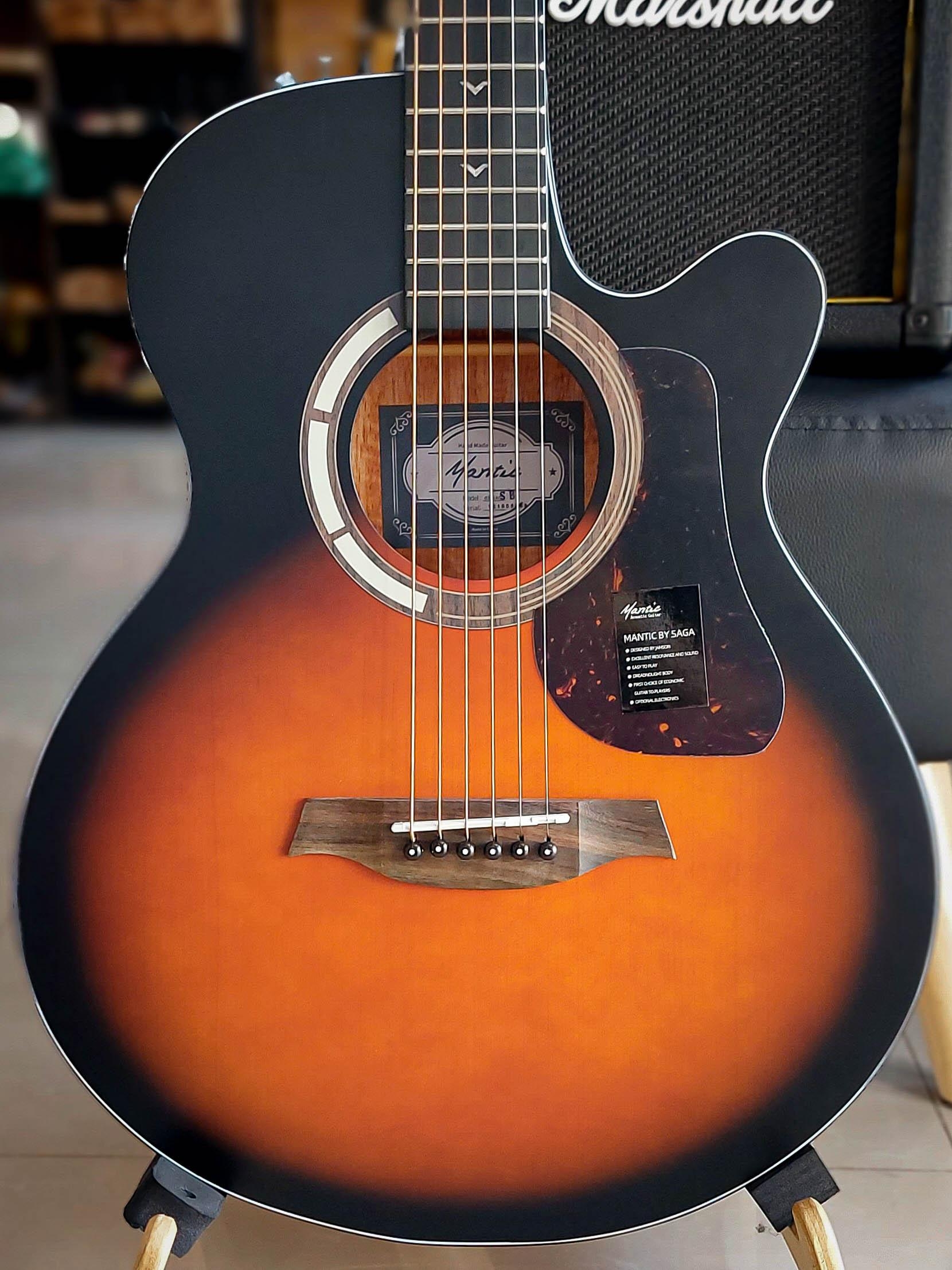 Mantic GT-1AC ✅ กีต้าร์โปร่งราคาเบาๆเหมาะกับผู้เริ่มต้น สำหรับรุ่นนี้จะมีขนาดเล็กกว่าปกติเล็กน้อย เหมาะสำหรับผู้หญิงและคนตัวเล็ก ไม้หน้าเป็นไม้แองเกิ้ลแมนสปรู๊ซที่ให้โทนเสียงใส ด้านข้างและหลังเป็นไม้เชอรี่วู้ด เป็นไม้เนื้อแข็งมีความแข็งแรงและลายไม้สวยงาม ให้โทนเสียงกลางดี คอไม้นาโต้ฟิงเกอร์บอร์ดโรสวู้ด ใครที่กำลังมองหากีต้าร์ขนาดไม่ใหญ่มาก แต่ให้เสียงที่ชัด กังวาน รับรองว่ารุ่นนี้ตอบโจทย์