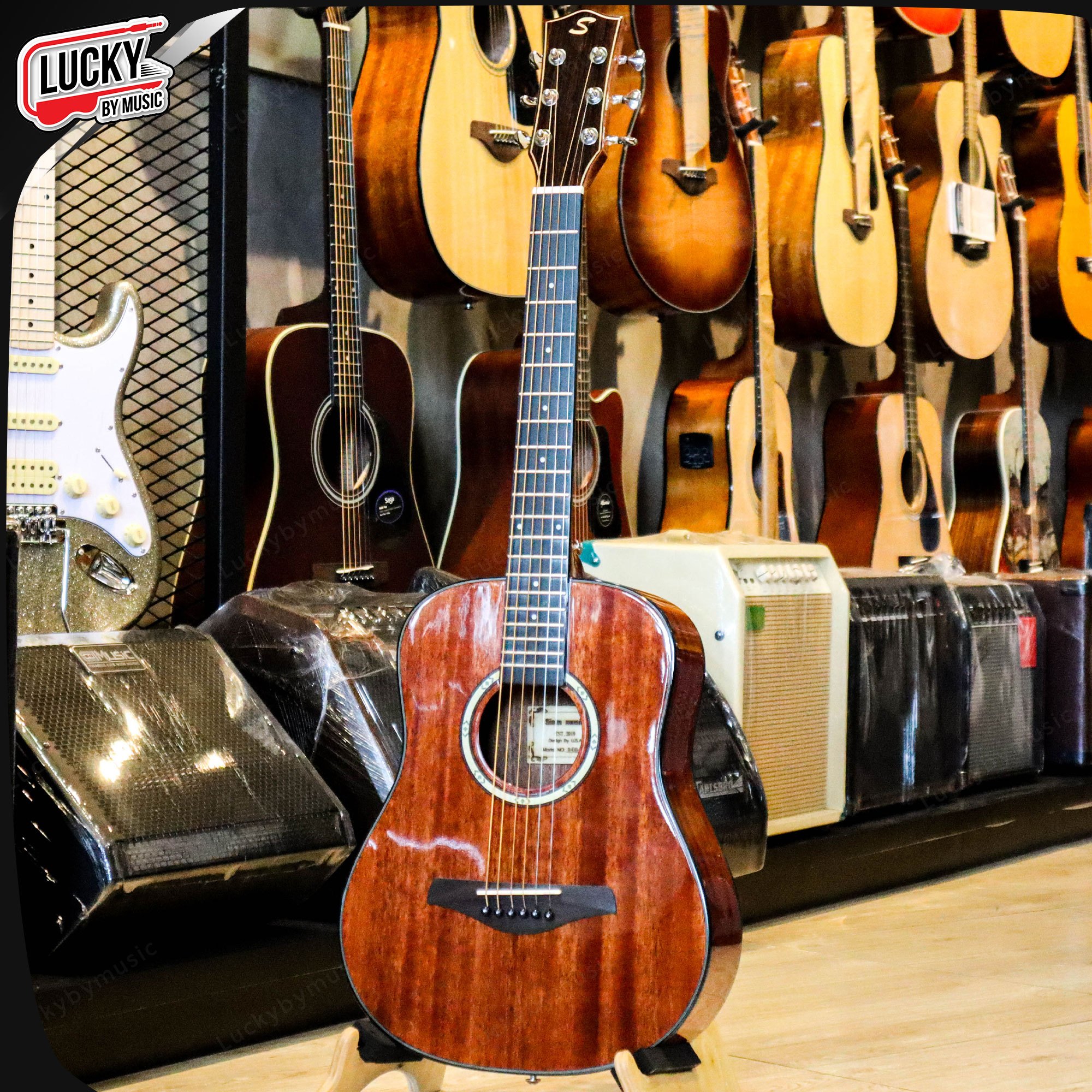 Siam music EG-34 กีตาร์โปร่ง ขนาด 34 นิ้ว ไม้หน้าแท้ TOP SOLID สีไม้เข้ม ฟรีกระเป๋า