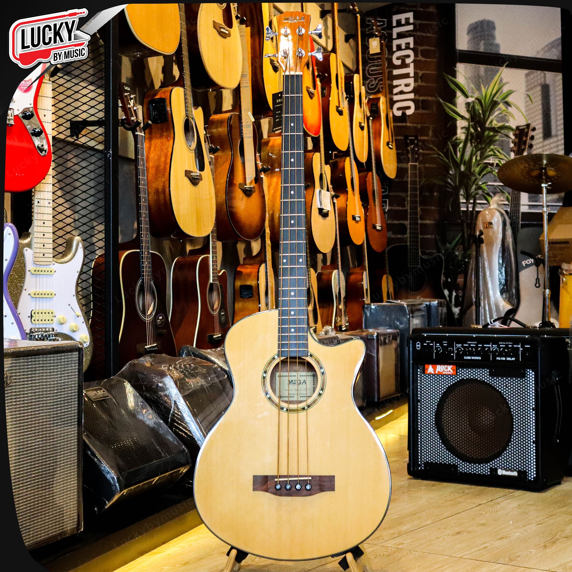 MEGA EQ LC-5 เบสโปร่งไฟฟ้า 4 สาย 22 เฟรต ไม้หน้าสปรู๊ช